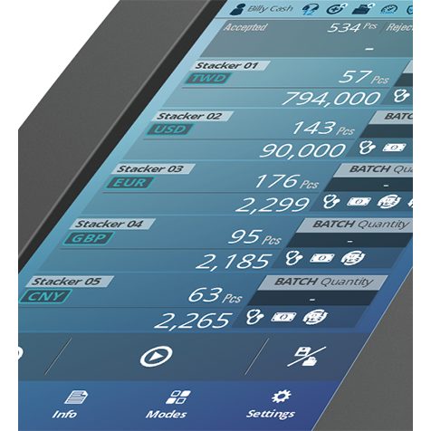 NC9500 is so far the most powerful fitness sorter in MA product portfolio, featuring expandable modular stacker design that comes with options of 200-note / 500-note capacity to process even more banknotes in one operation; plus enhanced and reliable banknote authentication and fitness-sorting.